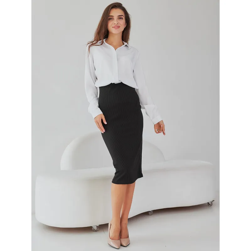 A classic basic pencil skirt in midi length is the perfect choice for the office, business meetings, or stylish everyday outfits. With its versatile fit, the skirt beautifully accentuates the silhouette and matches well with both shirts and knitwear. A practical choice for the modern woman who values comfort and elegance.