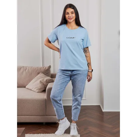 Легка та зручна футболка з м’якої бавовни із стильним написом "ciao" на грудях. Прямий крій забезпечує свободу рухів і комфорт протягом дня. Підходить як для прогулянок містом, так і для відпочинку вдома. Лаконічний дизайн легко комбінується з джинсами, шортами чи спідницею.