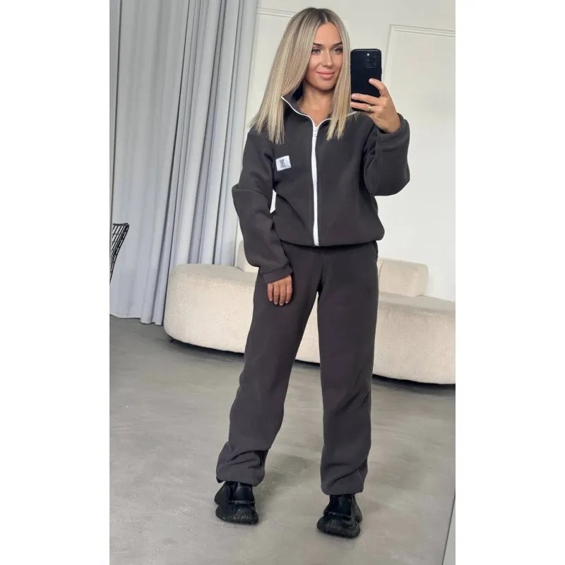Зручний жіночий флісовий костюм з кофтою на блискавці — м’який, теплий та стильний варіант для прогулянок, відпочинку чи щоденного носіння.
