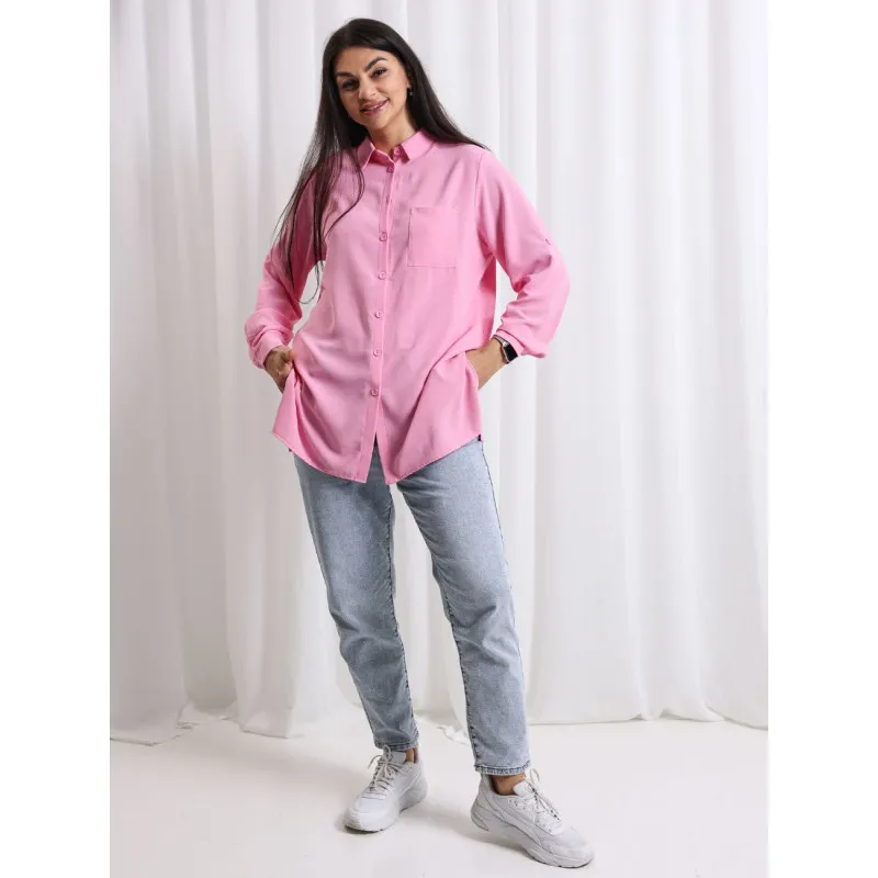 Сорочка oversize з крепу прямого крою, з довгим рукавом і накладною кишенею — базовий елемент для щоденного стилю.