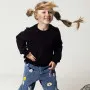 Для шкільного образу комбінуйте чорний світшот з білою сорочкою, брюками чи спідницею-олівцем — це стримана дитяча кофта чорна, яка не вибивається з дрес-коду. Для прогулянок працюють джогери, джинси, кросівки; у прохолодну погоду додайте жилет або парку. На свята змініть низ на ошатні штани чи спідницю — і отримаєте дитячу святкову кофту у мінімалістичному стилі, яку легко доповнити аксесуарами.