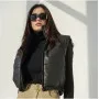 Жилетка жіноча чорна кроп з пухом під екошкіру